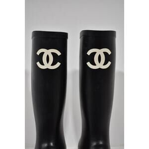 Chanel REV Black White Caoutchouc CC Logo High Pull On Rubber Rain Boots 36