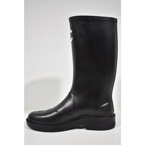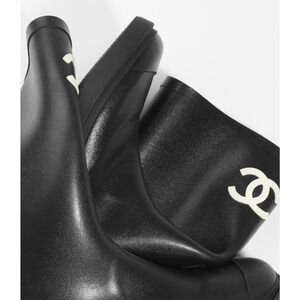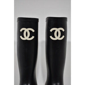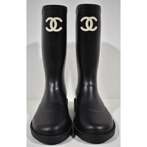 Chanel REV Black White Caoutchouc CC Logo High Pull On Rubber Rain Boots 37