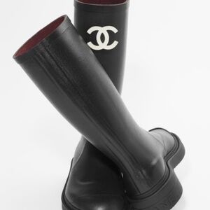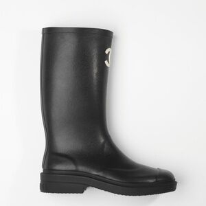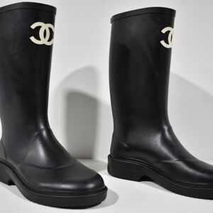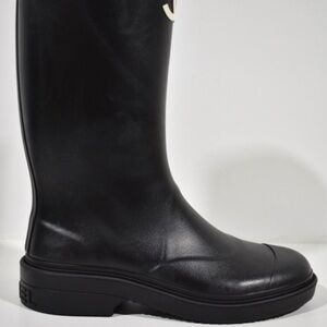 Chanel REV Black White Caoutchouc CC Logo High Pull On Rubber Rain Boots 39