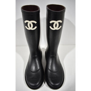 Chanel REV Black White Caoutchouc CC Logo High Pull On Rubber Rain Boots 42