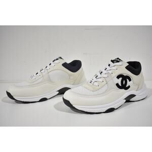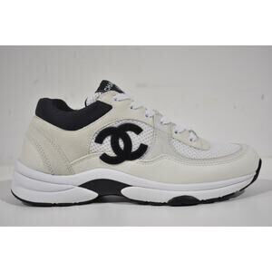 Chanel REV White Black CC Logo Leather Lace Up Flat Runner Trainer Sneaker 39.5