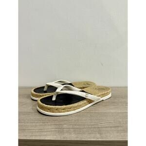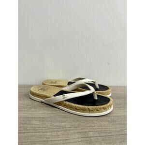 Chanel Raffia Leather Logo Slip On Platform Thong Sandals Beige Women's 38/ US 8