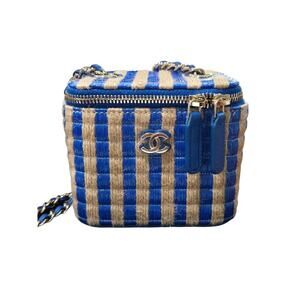 Chanel Raffia Mini Vanity Case Jute Blue & Beige (15019)