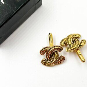 Chanel Rare Vintage Gold Plated CC Quilted Cufflinks