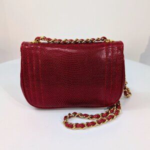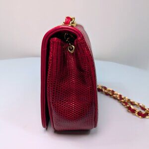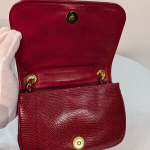 Chanel Rare Vintage Red Lizard Leather Mini Rectangular Flap Bag