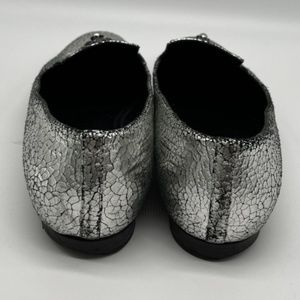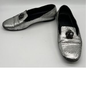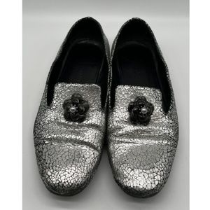 Chanel Re-Soled Fall 2015 Silver Leather Floral Charm Appliqué Loafer sz 38.5