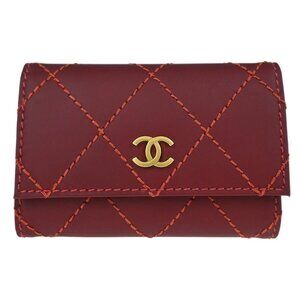 Chanel Red Calfskin Wild Stitch Six Hook Key Case Small Good