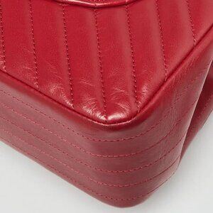 Chanel Red Chevron Quilted Lambskin Leather Classic Jumbo Double Flap Bag