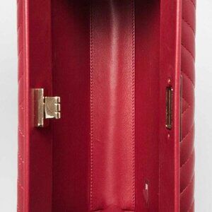 The Chanel Red Chevron Quilted Lambskin Leather Clutch Bag is what the celebrities are coveting. This popular Chanel style features a sleek design with a CC logo and frame top. The clutch opens to reveals a small interior for all of your girly essentials. An elegant and chic piece to add to any collection, perfect for evening or a stylish day time outfit.