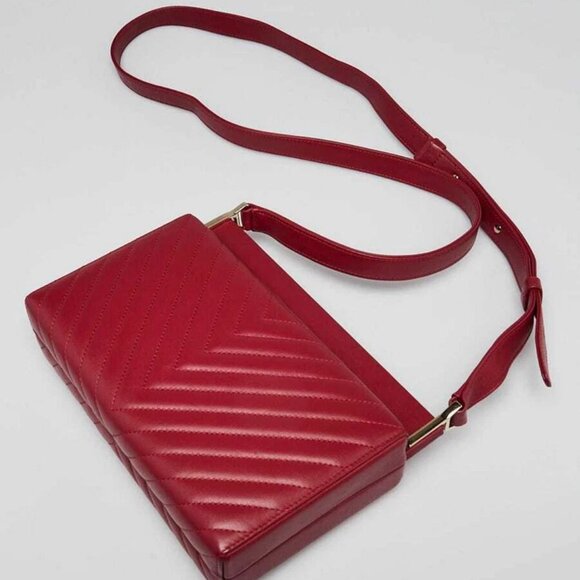 Chanel Red Chevron Quilted Lambskin Leather Clutch Bag