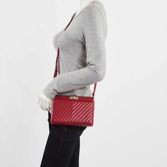 The Chanel Red Chevron Quilted Lambskin Leather Clutch Bag is what the celebrities are coveting. This popular Chanel style features a sleek design with a CC logo and frame top. The clutch opens to reveals a small interior for all of your girly essentials. An elegant and chic piece to add to any collection, perfect for evening or a stylish day time outfit. Current retail price is $4500.