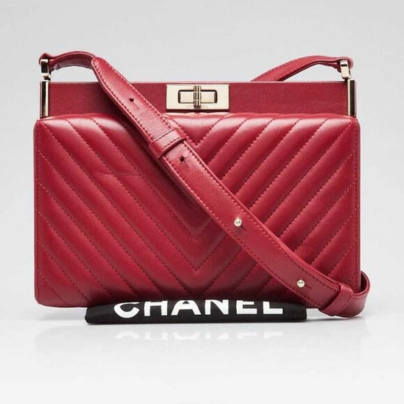 Chanel Red Chevron Quilted Lambskin Leather Clutch Bag