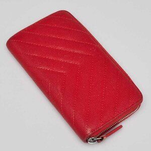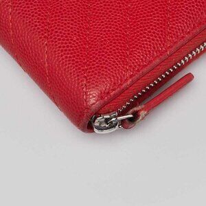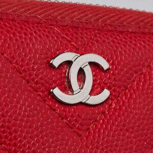This Chanel Red Quilted Chevron Leather Zippy Compact Wallet is perfect if you are seeking something small, chic and luxurious to organize your credit/debit cards. It features a beautiful textured leather and a silvertone CC logo on the front as well. You will certainly adore this Chanel piece.