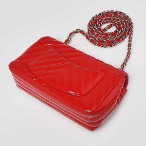 Chanel Red Chevron Quilted Patent Leather Classic Rectangular Mini Flap Bag