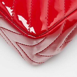 Chanel Red Chevron Quilted Patent Leather Classic Single Jumbo Flap Bag