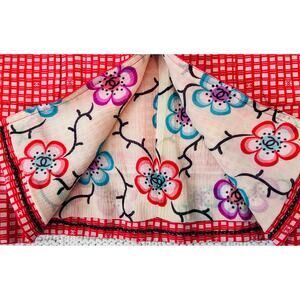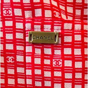 Chanel Red Coral Checkered Jacket Blazer Flower Lining