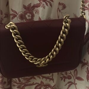 Chanel Red Leather Shoulder Bag with Gold Chain