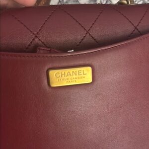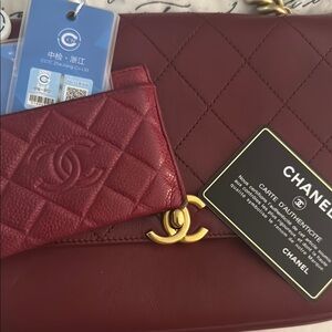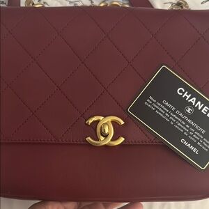 Experience timeless elegance with the Chanel Red Leather Shoulder Bag, featuring a striking gold chain strap and the iconic CC turn-lock closure. Crafted from premium leather, this medium-sized bag boasts a structured silhouette that exudes sophistication. The rich red hue and luxurious gold hardware make it a standout accessory for any occasion. Box and dust bag. Free a Chanel card holder.Like New.