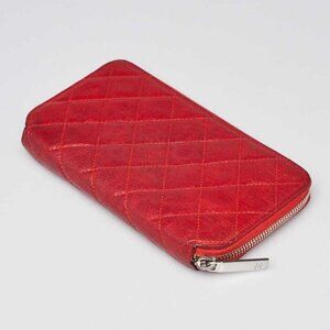 Chanel Red Quilted Calfskin Leather CC L Gusset Zip Wallet