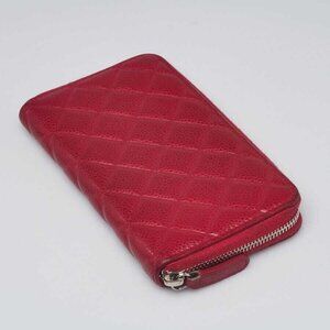 Chanel Red Quilted Caviar Leather CC Zip Compact Wallet