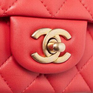 Chanel Red Quilted Lambskin Leather Classic Square Mini Flap Bag