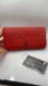 This exquisite Chanel wallet in a delightful red hue showcases the brand's iconic chevron quilting, offering a touch of sophistication and luxury. Crafted from premium leather, it features the signature CC logo in silver hardware, making it a timeless accessory for any occasion.