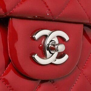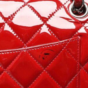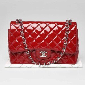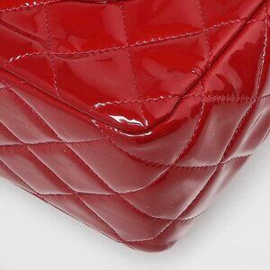Chanel Red Quilted Patent Leather Classic Jumbo Double Flap Bag