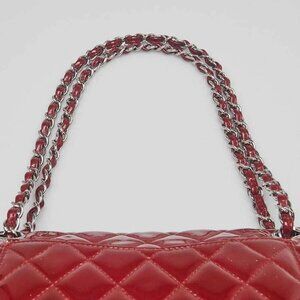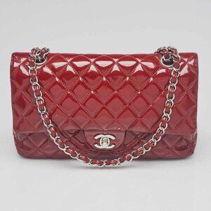 Chanel Red Quilted Patent Leather Classic Medium Double Flap Bag