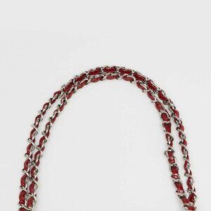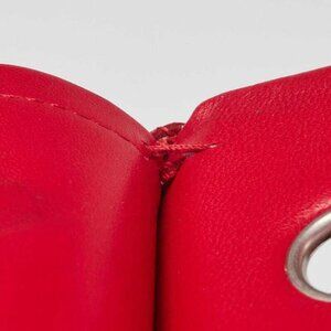 The exterior patent leather remains glossy but has light scuffs and scratches. The hardware is bright and shiny with hairline scratches present. The interior leather has some faint impressions left by the chain strap as well as some creasing and signs of use. Overall the bag remains clean and is in very good condition.