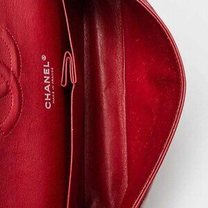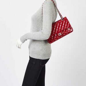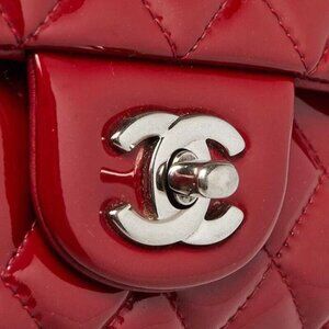 Chanel Red Quilted Patent Leather Classic Medium Double Flap Bag