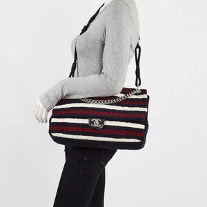 Chanel Red White and Blue Quilted Jersey Rope Single Flap Bag