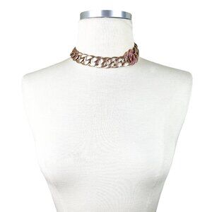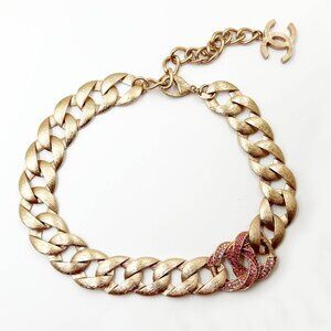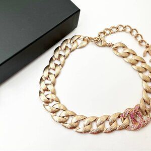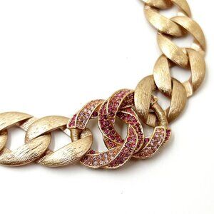 Chanel Rose Gold CC Fuchsia Crystal Chain Choker Necklace
