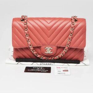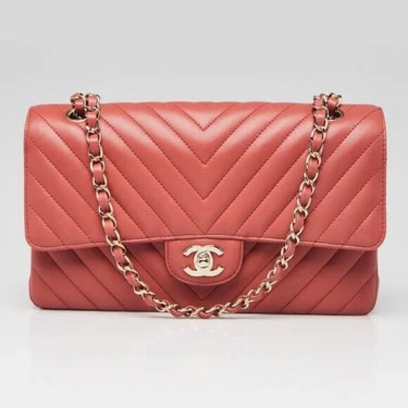 Chanel Rosewood Chevron Quilted Lambskin Leather Classic Medium Double Flap Bag