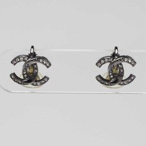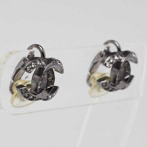 Chanel Ruthenium Metal Crystal CC Clip On Earrings