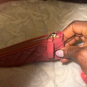 This exquisite CHANEL clutch showcases a luxurious quilted design in a soft pink hue, featuring the iconic diamond pattern stitching. Crafted with a glossy finish, it exudes elegance and sophistication, making it a timeless accessory for any occasion.