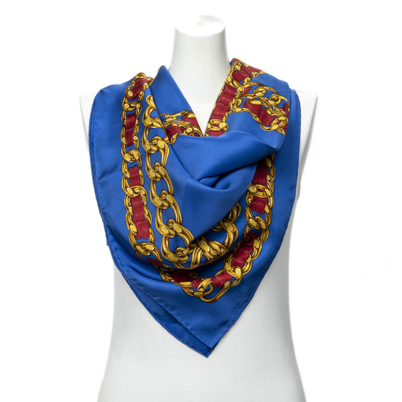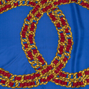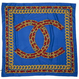 Chanel Scarf Scarf in Blue/Gold/Red 100% Twill Silk and hardware. The product is in Perfect Condition (AA).