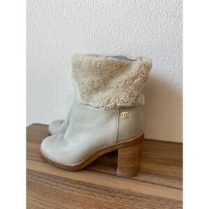 Chanel Shearling Suede Ankle Boots – Cream / Ivory – Fur Trim Size 37 1/2