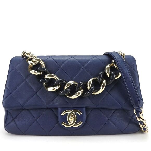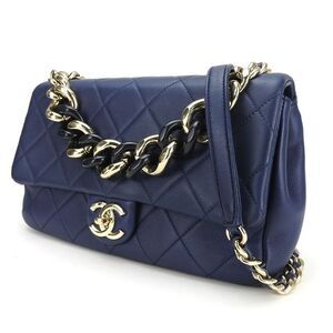 Chanel Shoulder Bag Matelasse Lambskin Navy Gold Hardware 2WAY Hand No 29