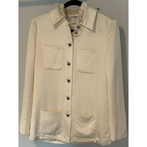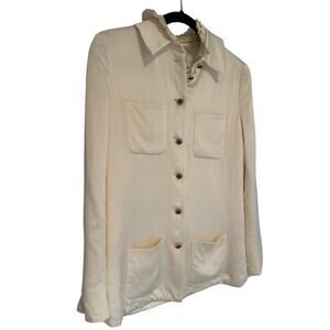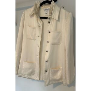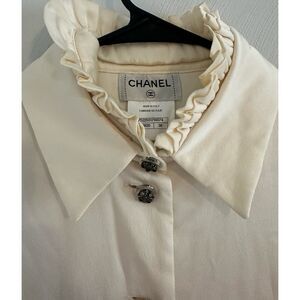 Chanel Silk Ivory Button Down Blouse Jacket With Frill Collar