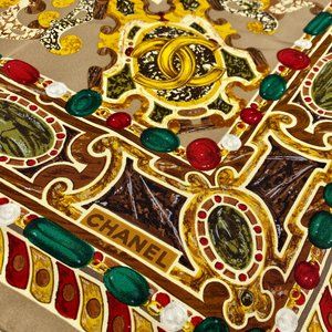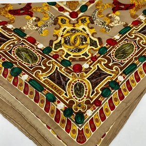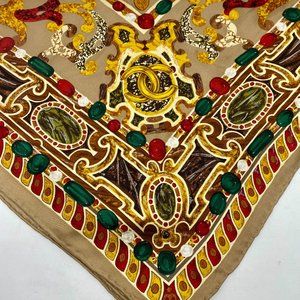 Chanel Silk Scarf Autumnal Birds CC Ornate Classic Mosaic