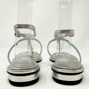 Chanel Silver Leather Crystal Embellished Interlocking CC Thong Flat Sandals