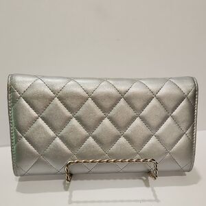 Chanel Silver Metallic Lambskin Leather Quilted Wallet with Iconic CC Logo