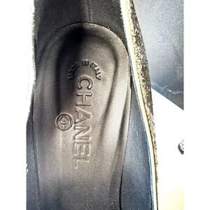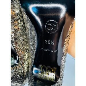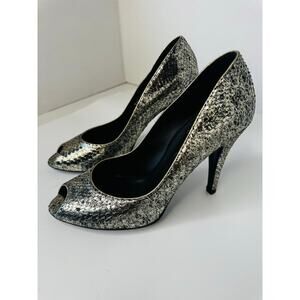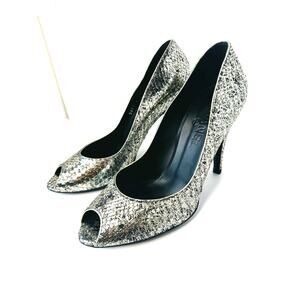 Chanel Silver Metallic Textured Leather Peep Toe Pumps Heels Size 38.5