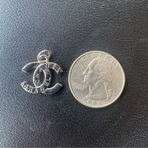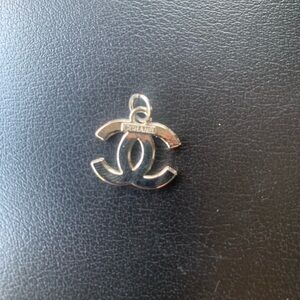 Elegant Chanel pendant in a sleek silver finish. Perfect for adding a touch of luxury to any outfit.