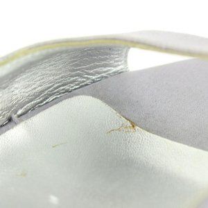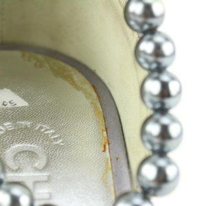 Chanel Size 36.5 Grey Satin Peep Toe Pearl Ankle Strap Pumps Size 13c48