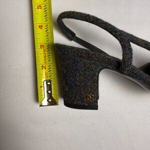 Chanel | Size 38.5, US 8.5 | Grey & Navy Tweed Slingback Pumps | ($1,125)