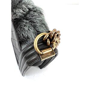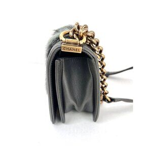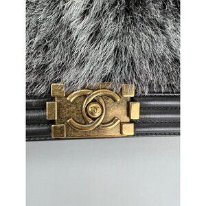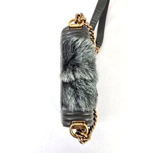 Chanel Small Boy Flap Quilted Goat Hair Gray Leather Shoulder Bag RARE