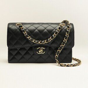 Chanel Small Classic Black Grained Calfskin & Gold-Tone Metal Handbag