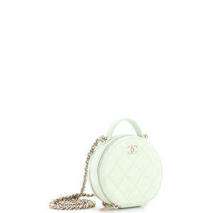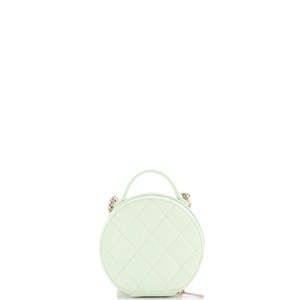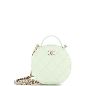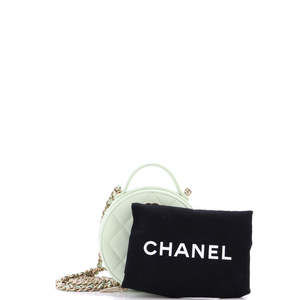 Chanel Small Handle with Care Round Vanity Case with Chain Quilted Caviar