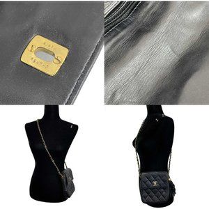 Features a gold chain link leather threaded strap and a gold Chanel CC turn lock